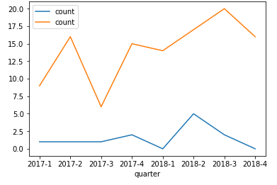 df2.plot(x = 'quarter', y = 'count', ax = ax)
