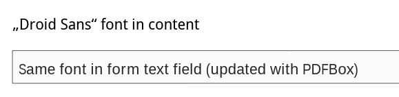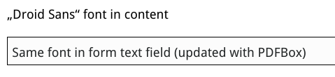 acroForm.getField("text").setValue("Same font in form text field (updated with PDFBox)");
