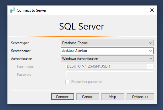 我有Microsoft SQL Server 2016。我过去经常使用服务器名,没有问题。