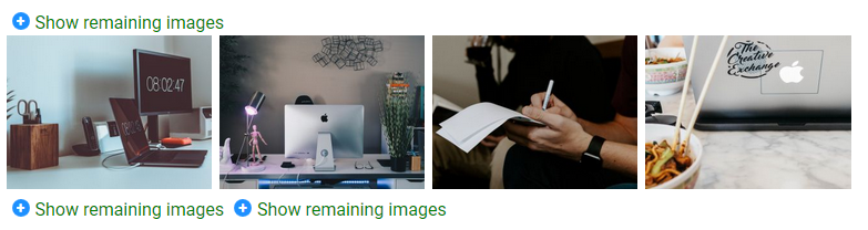 除了我发布的代码隐藏在展开元素中的前4张外,我还能在一个循环中生成所有图像,但我很难将展开的消息显示在所有元素下面一次。在单击展开消息之前,如下所示: