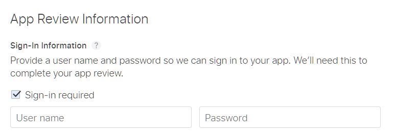 对于iOS,您必须提供用户名和密码,以便应用程序商店评审小组能够检查它。
