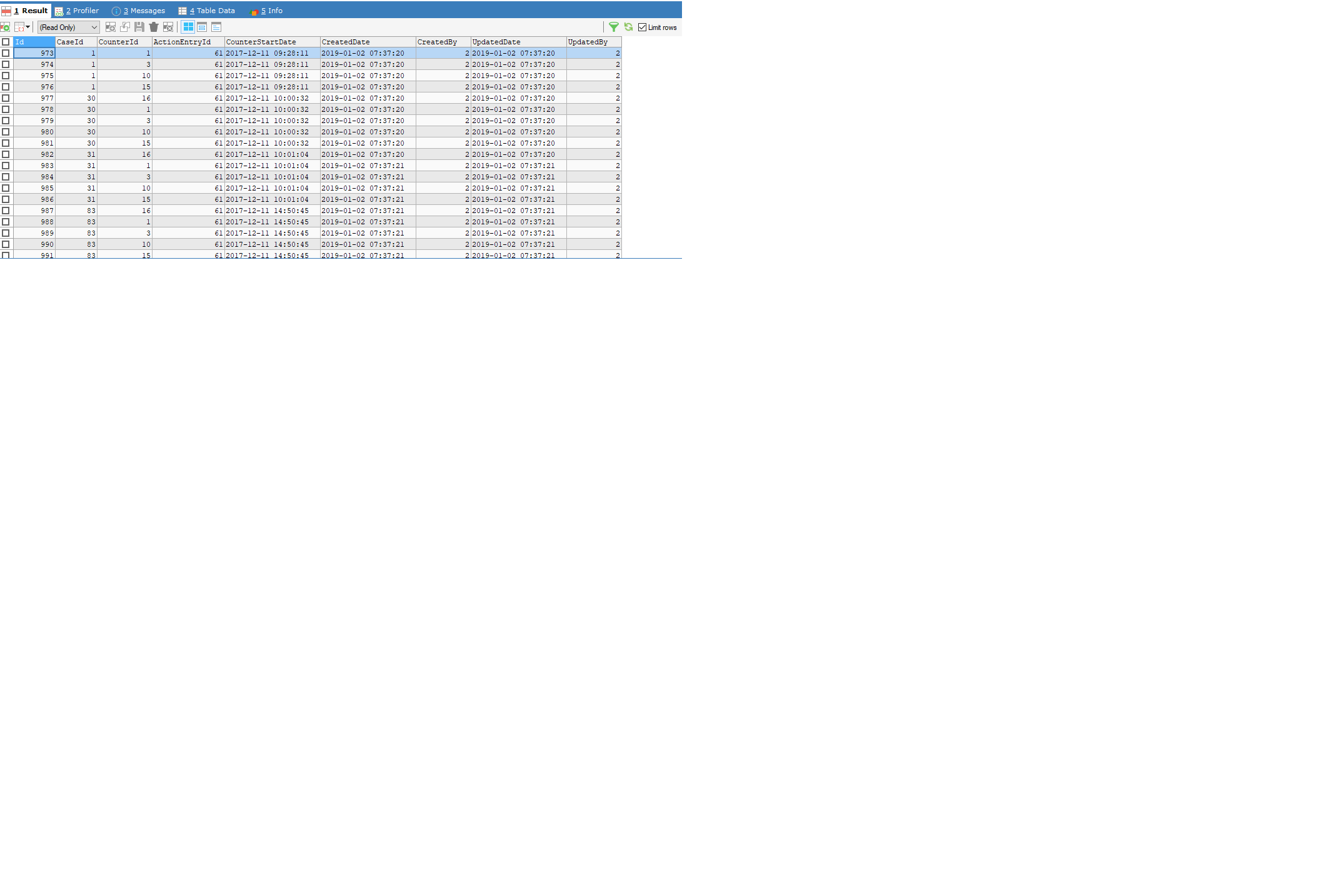 Id CaseID CounterID ActionID CurrentStart CreatedDate