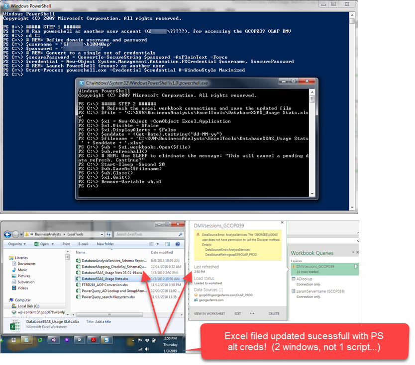 # Run powershell as another user account (DOMAIN\?????), for accessing the GCOP039 OLAP DMV