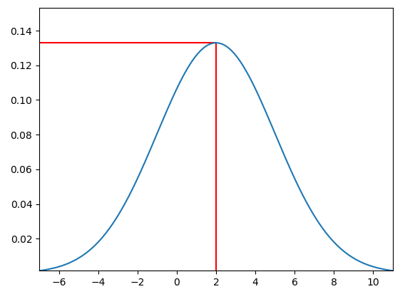 ax.hlines(y=max(y), xmin=min(x), xmax=mu, color='r')