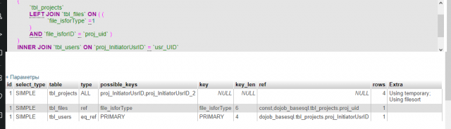 ORDER BY `file_uid` DESC LIMIT 0 , 15我在上面使用了“解释”,发现它没有对第一个表table_projects使用任何键。