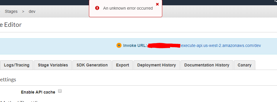 在API网关中,我试图将API部署到新的阶段,并得到“发生了未知错误”的错误。我认为这很可能是因为得到了许可。但是我有API网关管理员权限。如何准确地找出缺少哪些权限?aws网关记录任何与部署相关的事件吗?我在哪能找到发生什么事。