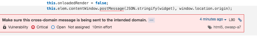 我假设它要求*不能用作targetOrigin,但当我将预期域作为targetOrigin使用时,它仍然显示警告,如下所示: