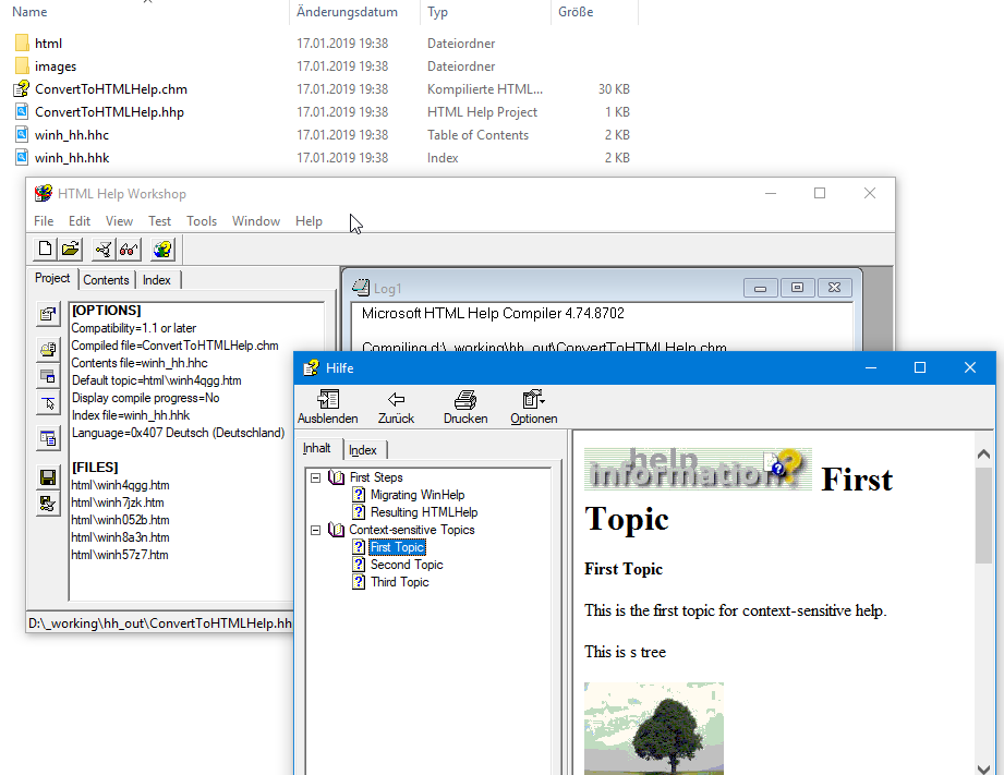 我网站上的一个教程给出了分步描述如何在免费软件/共享软件和“低预算”级别上将WinHelp (HLP)转换为HTMLHelp (CHM)。下载部分中的转换项目示例包括工作结构和示例文件。