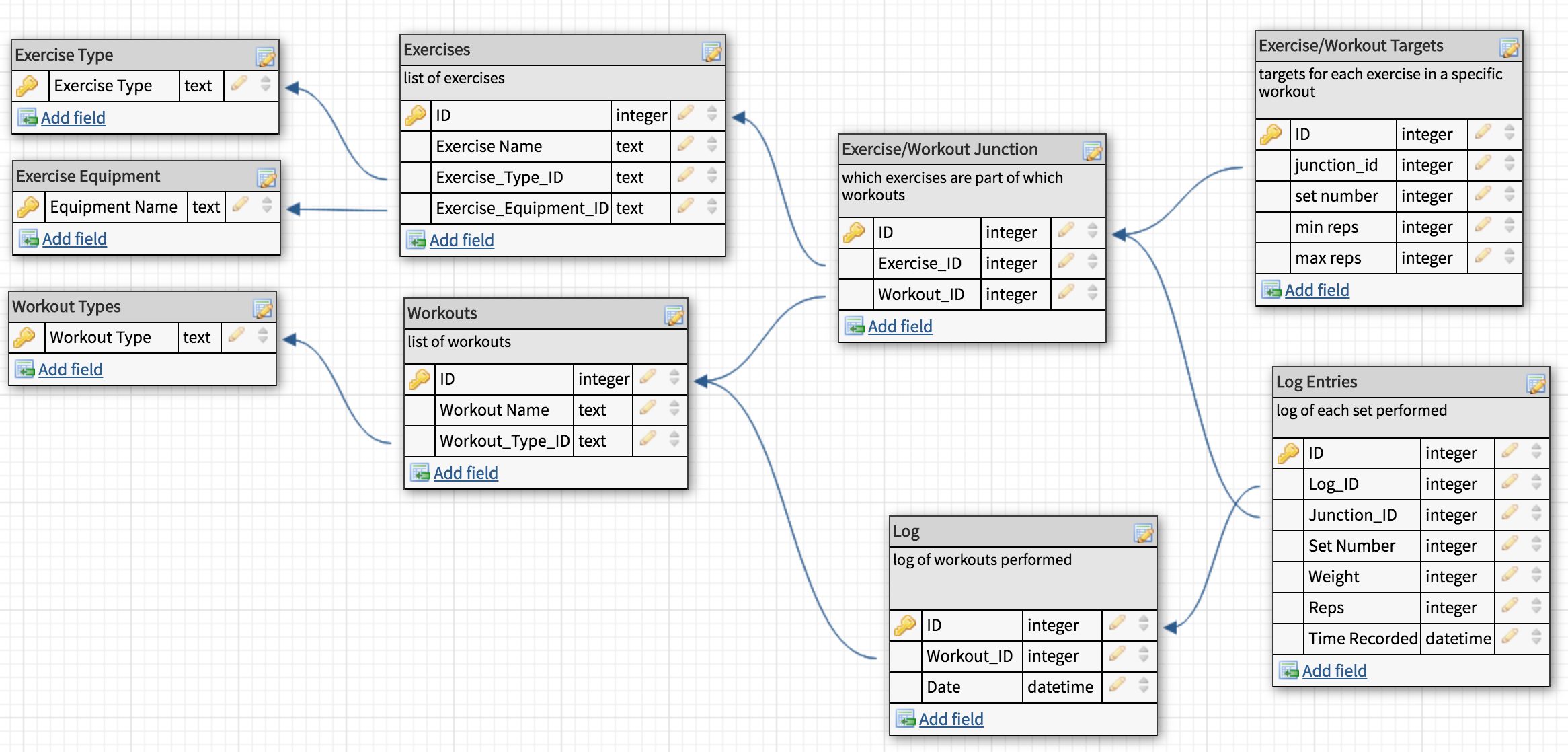 我正在制作一个android应用程序(我的第一个)来记录健身锻炼,但我不知道如何最好地构造数据库来存储这些数据。