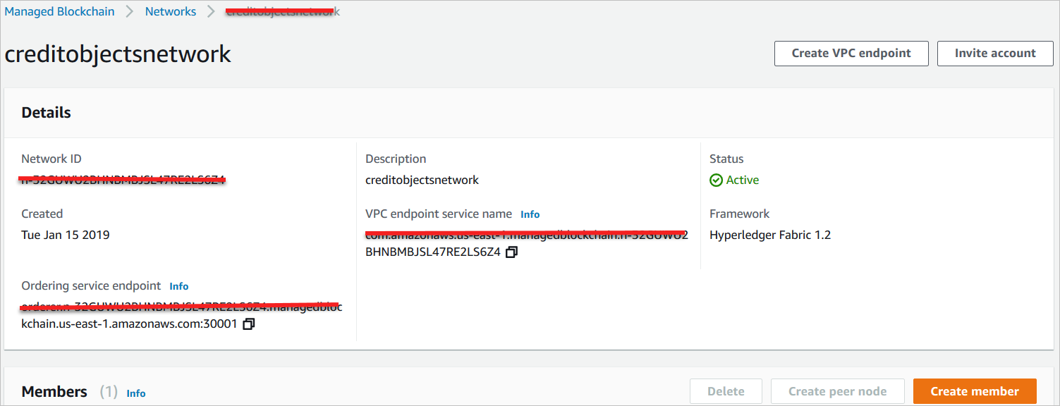 我正在探索亚马逊管理的区块链。创建网络(Hyperledger 1.2),添加第一个成员,添加对等节点,并创建VPC服务端点。调用一个示例chainnode,我也可以查询链表节点。现在我想在现有的网络中增加另一个成员,但我无法这样做。我没有使用amazon管理的块链仪表板,而是使用AWS并使用下面的命令。