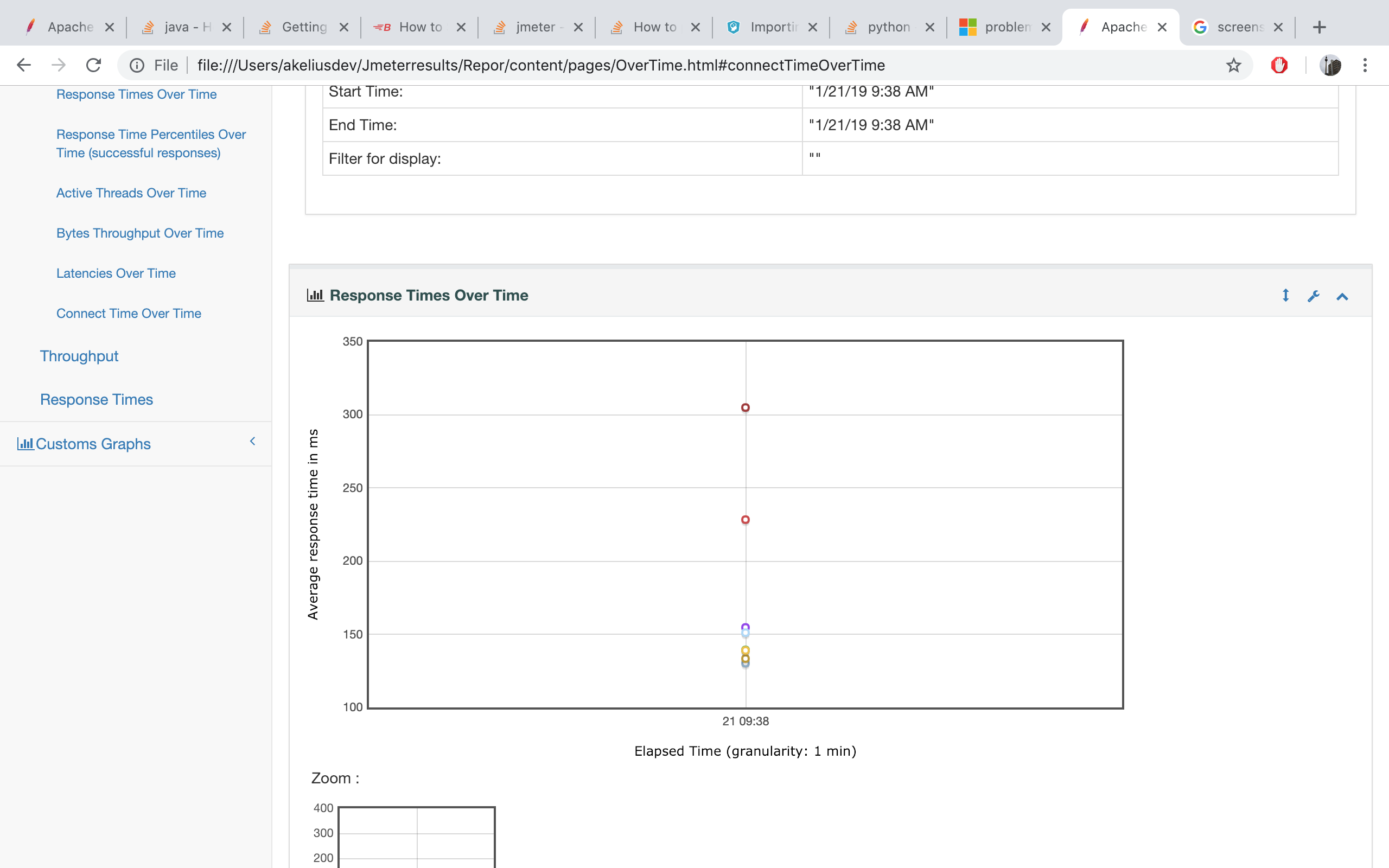 我正在使用HTML报表仪表板分析j测量仪的测试结果,但是它只显示了一个特定时间的输出,而不是所有示例的输出。