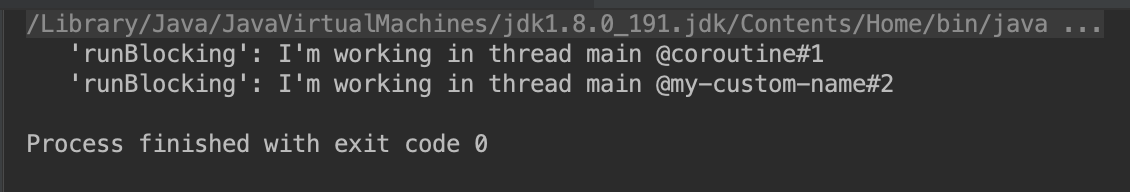 println(" 'runBlocking': I'm working in thread ${Thread.currentThread().name}")