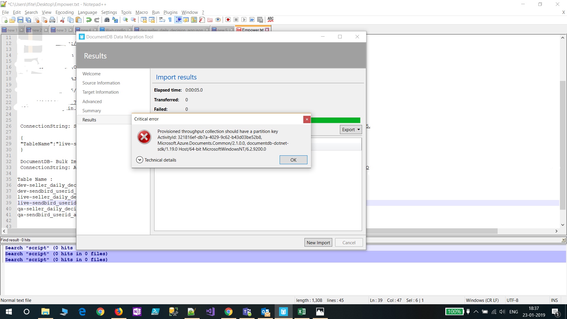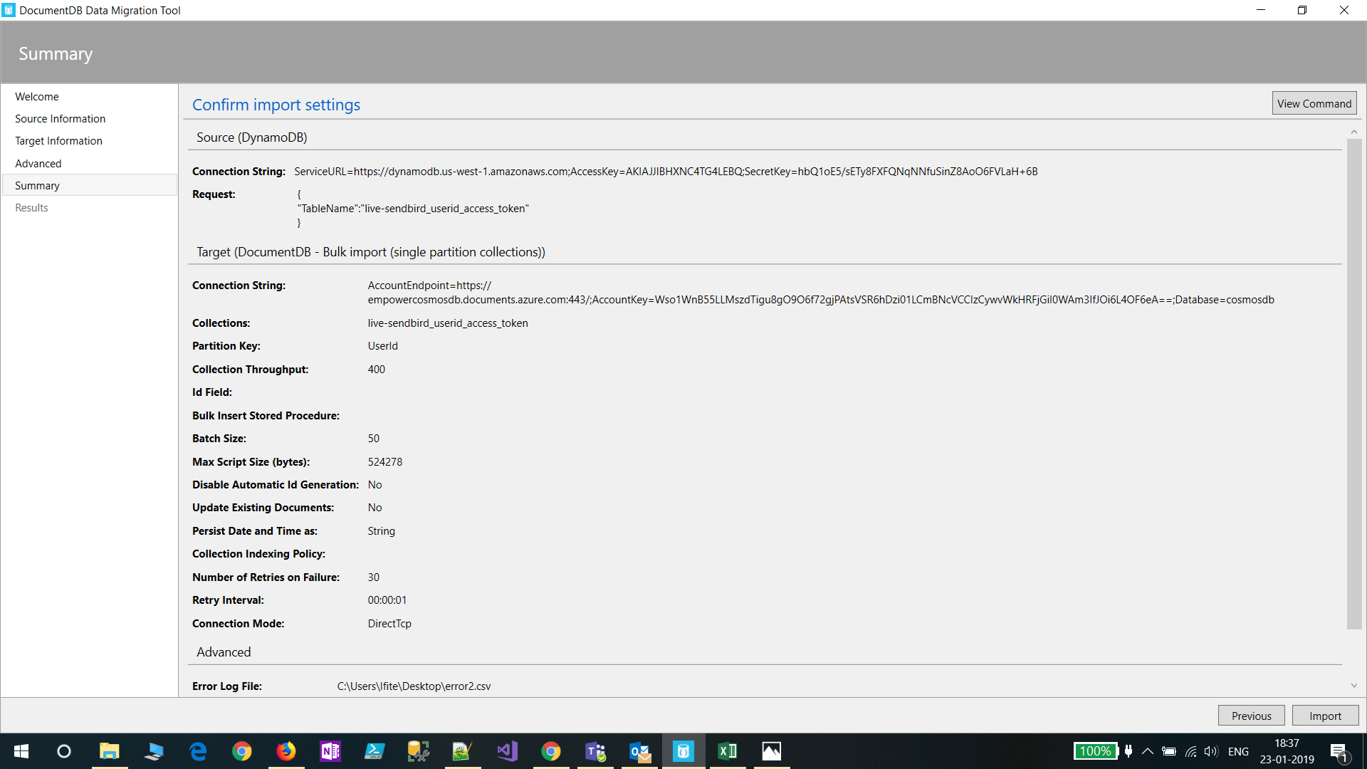 我正在使用DocumentDB数据迁移工具将AWS DynamoDB数据迁移到Azure CosmosDB,但是对于大型表数据,我得到了一个错误。