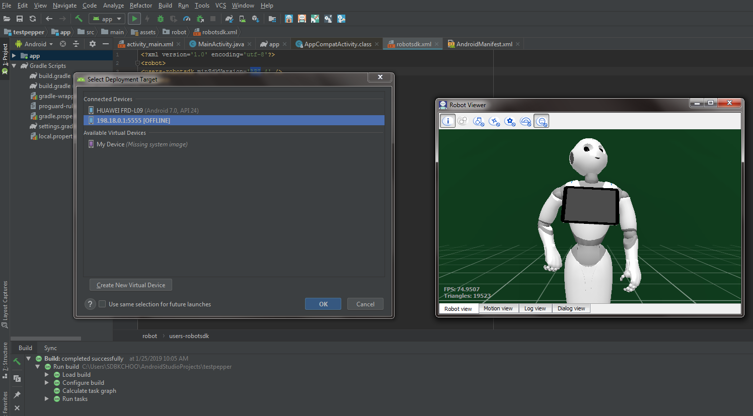 我试着用我的Windows 7笔记本电脑连接到Pepper机器人。它是连接的,我可以使用Android查看机器人,但当我想部署Pepper机器人时,它会显示“离线”。
