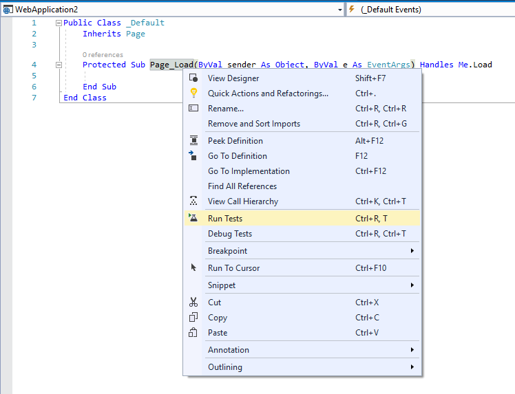 有人知道我错过了什么吗。在使用VB.NET语言的项目中,我需要做什么特别的事情来获得这个选项吗?