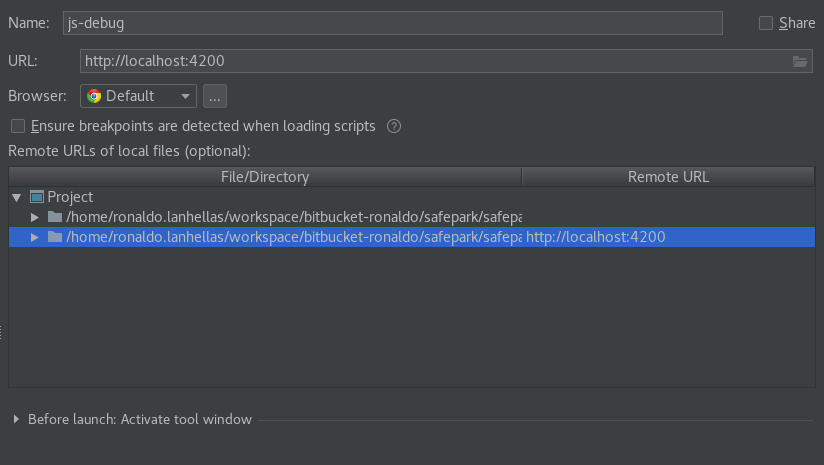 我正在尝试使用Intellij在我的角项目中启用调试模式,所以在启动我的项目(npm start)之后,我创建了一个JavaScript调试配置