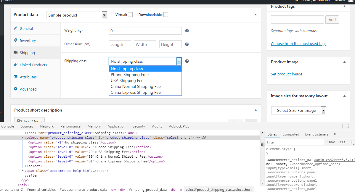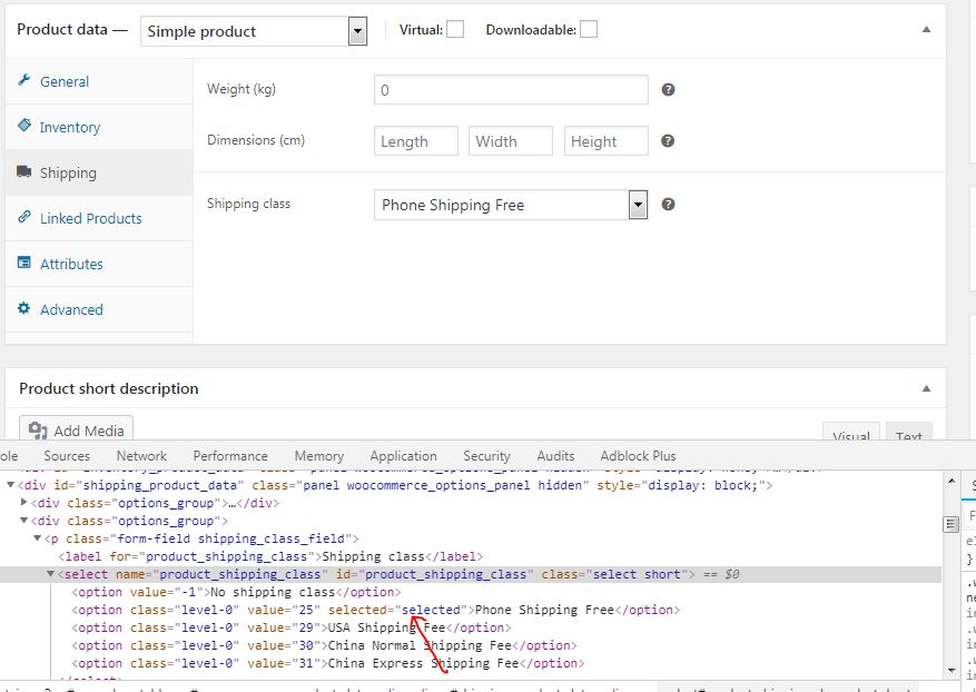 好日子,我一直试图弄清楚如何使用php以编程方式选择配送类。我正在使用表单从前端创建woocommerce产品,并在表单提交时创建产品,但我可以选择任何运输类。下面的屏幕截图显示了从前端创建的产品上的送货类设置,并用ids元素选项卡显示配送类的ids(作为值)。