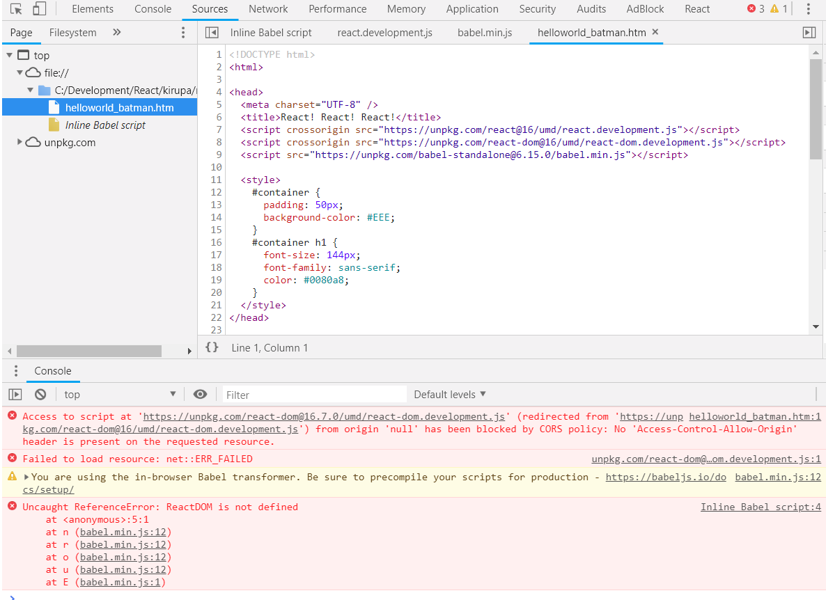我正在学习ReactJS,并试图在batman.htm上运行代码(这是来自app.htm的说明)。