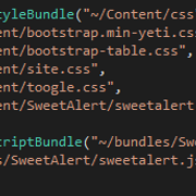我在内容文件夹中添加了sweetalert.css,在脚本文件夹中添加了sweetalert.js脚本,引用了BundleConfig.cs,如下所示: