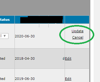 <asp:CommandField ShowEditButton="true" ItemStyle-Width="70px" />单击“编辑”将显示“更新”和“取消”按钮,如下所示: