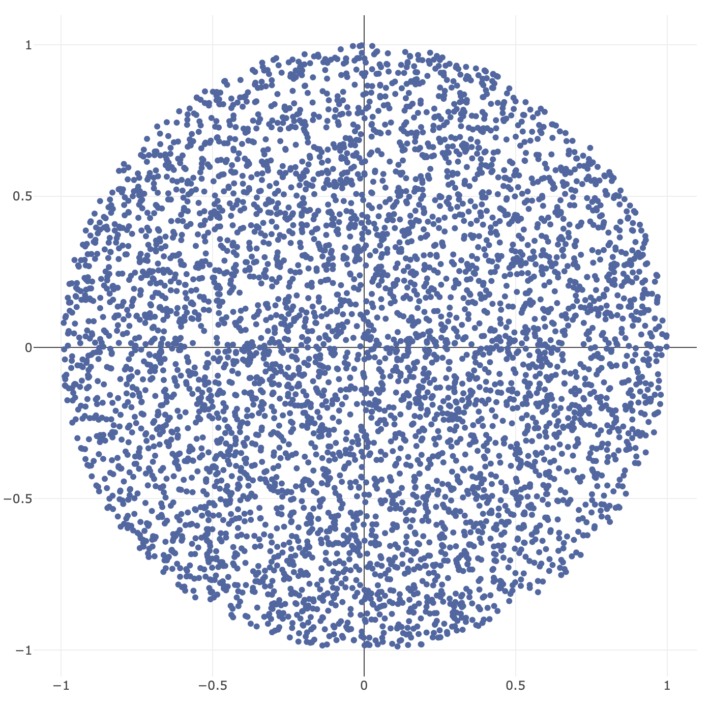 return radius * (random_directions * random_radii).T对于后代来说,下面是用上面的代码生成的5000点随机点的视觉效果。
