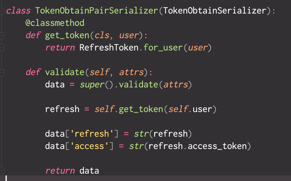 class MyTokenObtainPairSerializer(TokenObtainPairSerializer):