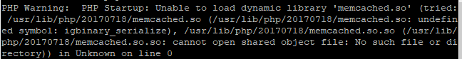 PHP Warning: PHP Startup: Unable to load dynamic library 'memcached.so' (tried: /usr/lib/php/20170718/memcached.so (/usr/lib/php/20170718/memcached.so: undefined symbol: igbinary_serialize), /usr/lib/php/20170718/memcached.so.so (/usr/lib/php/20170718/memcached.so.so: cannot open shared object file: No such file or directory)) in Unknown on line 0