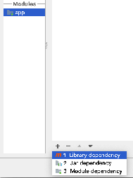 }然后我去了文件->项目结构->应用程序->依赖项-> i单击+ ->我选择了库依赖项