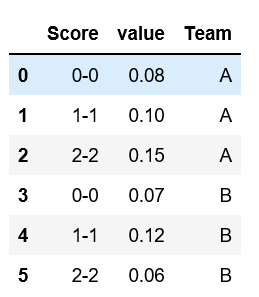 df = pd.DataFrame({'score': np.array(data).ravel(), 'value': np.array(values).ravel()})