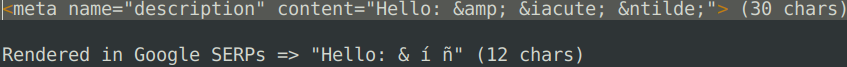 如果155个字符是元描述标签的限制,那么“&;”、“í;”、“i;”.影响到这个限制添加更多的字符,或者在计算155个字符限制时,每个字符只被视为一个字符?