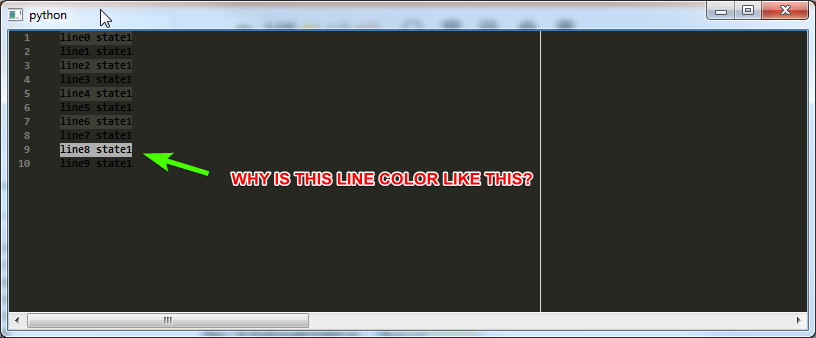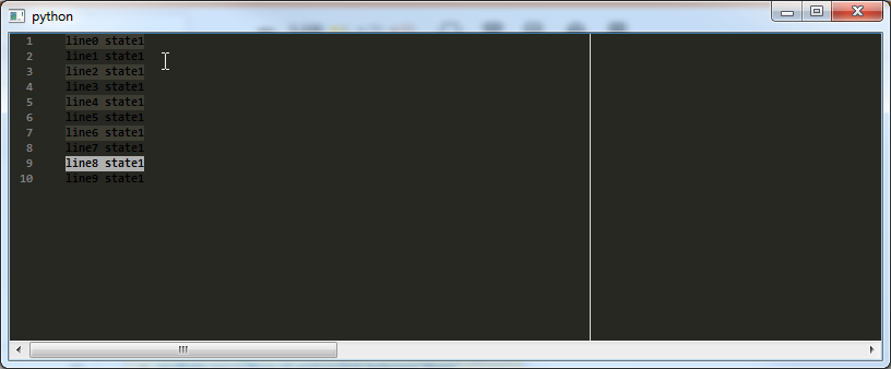 问题1:添加的最后一个选项自动设置为Main选择。要删除它,请在sci.SendScintilla(sci.SCI_SETMAINSELECTION, -1)函数的末尾添加行set_state1。