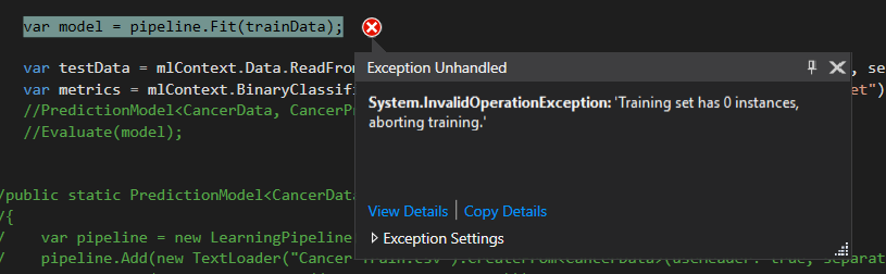 var trainData = mlContext.Data.ReadFromTextFile<CancerData>("Cancer-train.csv",