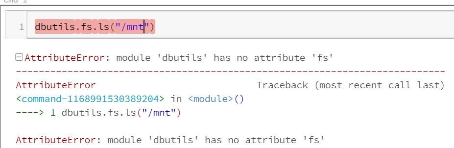 AttributeError: module 'dbutils' has no attribute 'fs'