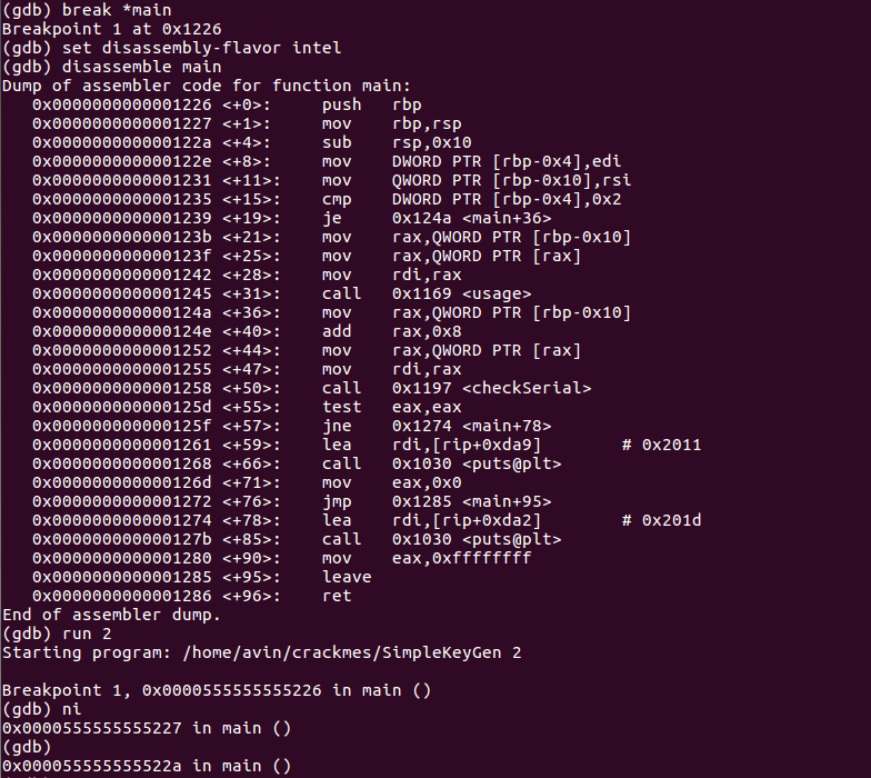 这是我的gdb输出。我如何使它写行号,而不是...227变成main+1,就像我拆解它时所显示的那样?