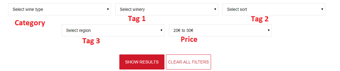 我试图根据表单输入字段创建一个简单的表单来查询woocommerce产品葡萄酒,如下所示:
