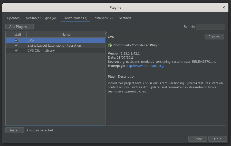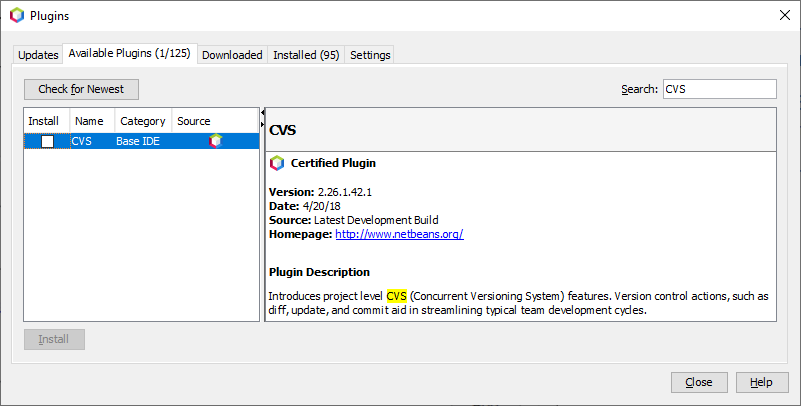 我最终升级到Apache 10 (从8.2版本),并希望像往常一样使用菜单Tools->Plugins->Available Plugins安装CVS插件。