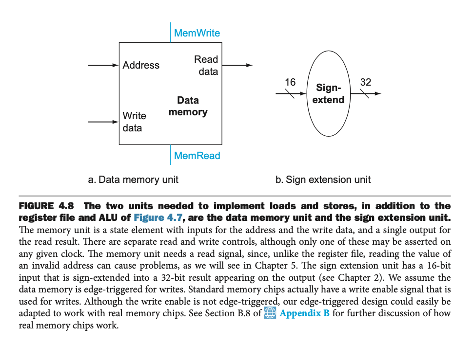 要记住的一件重要的事情是,所有的复用器输入都是计算出来的,然后选择正确的输出。因此,对于不涉及从内存读取的指令,ALU结果仍然传递给内存,即使MemToReg控制信号告诉复用器忽略来自内存的值。因此,这意味着,如果没有MemRead,内存可能会认为它得到的地址是无效的,这可能会导致一些问题。例如,(不是真正的地址)“地址”可能超出范围,也可能不对字对齐,这可能会触发硬件异常。