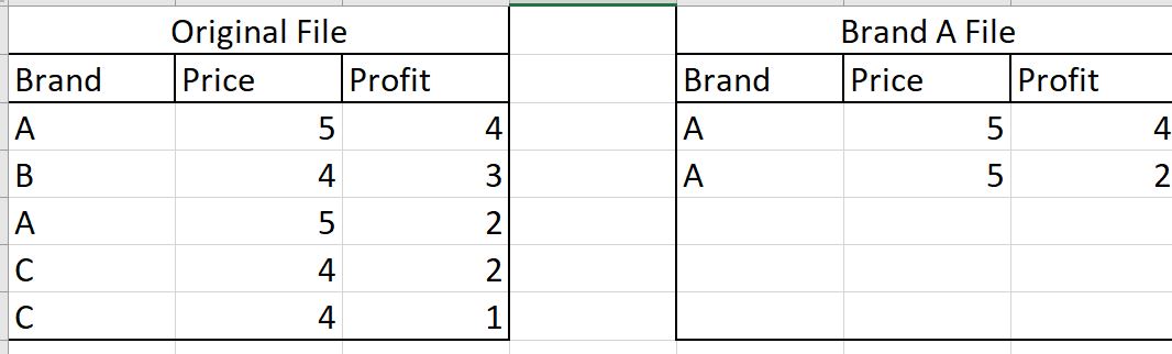 由于每个品牌的总销售是自信的,我必须把交易分成50个不同的文件,根据它的品牌,并分别提交。手动这样做需要时间,所以我正在考虑使用VBA代码。