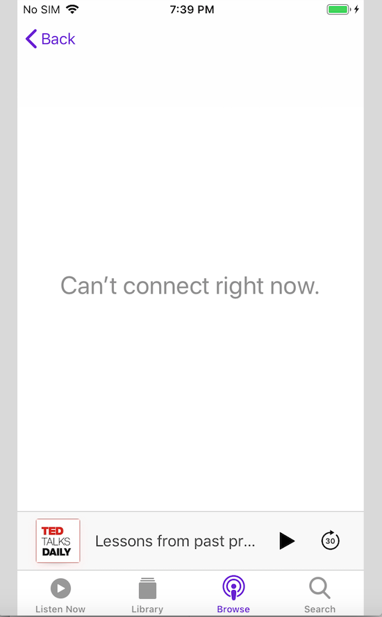 但是它会重定向到Browser页面中的Podcasts,并显示错误“现在无法连接”。请看下面的图片。