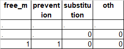 if free_m=. and prevention=0 and substitution=0 and oth=0 then