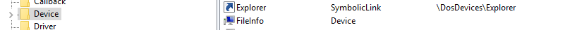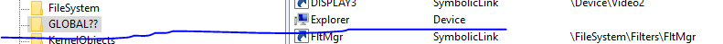 现在,我需要确保设备和符号链接都存在于Windows对象目录中。要做到这一点,我使用WinObj (来自sysinternals的另一个工具),下面是输出