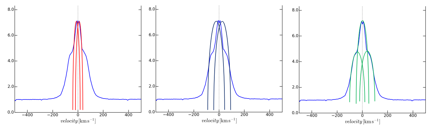 popt, pcov = curve_fit(multi_gaussian, vel, flux, guess)