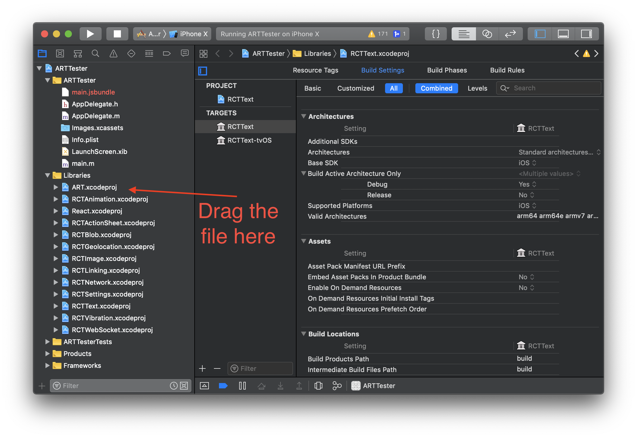 确保用Xcode打开项目,然后将ART.xcodeproj拖到Libraries列表中。