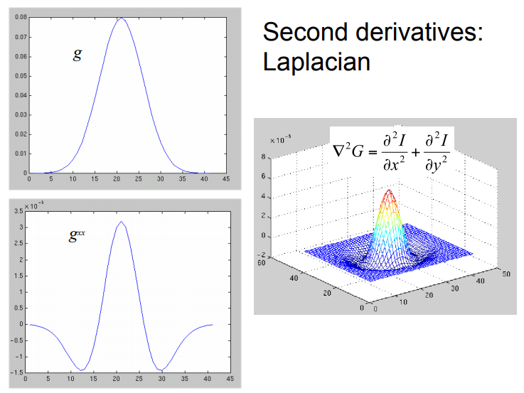 在第一个图像中,f不是高斯的,f‘是。因此,f“是高斯的一阶导数,另一幅图像是高斯的二阶导数。