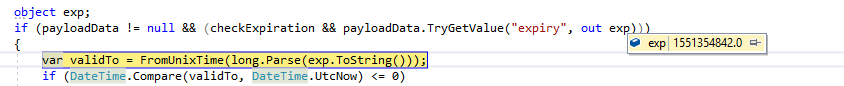 var tempExpiry = long.Parse(exp.ToString());