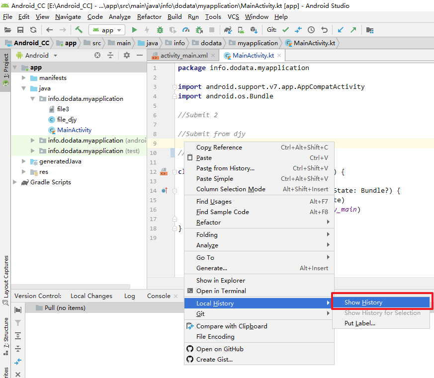 我在AndroidStudio3.3中的项目中使用Github。
