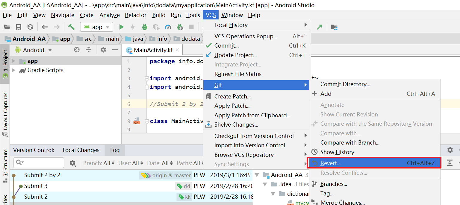 Version Control -> Log -> Revert实际上是这样做的: