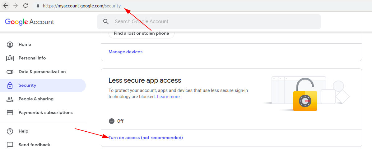 打开从smtp中使用的帐户屏幕截图中显示的设置的访问权限。