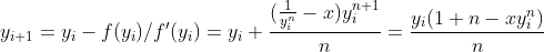 y = y * (n + 1 - x * power<n>(y)) / n;