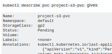 {"apiVersion":"v1","kind":"PersistentVolumeClaim","metadata":{"annotations":{},"name":"project-s3-pvc","namespace":"default"},"spec":{"ac...